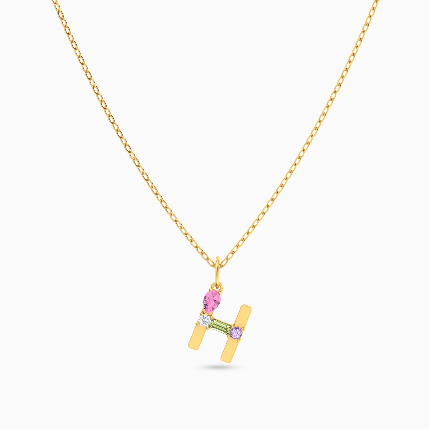 The H pendant — a delicate creation in 18K gold, designed to capture the beauty of individuality and elegance. Choose between two enchanting styles: one adorned with shimmering blue aquamarine that evokes calm and clarity, and another set with vivid pink tourmaline radiating warmth and femininity. Both are accented with brilliant white zircon for a touch of timeless sparkle. A graceful expression of your story, beautifully told through color and light.